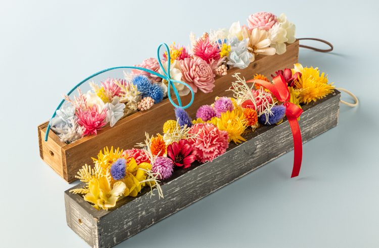 長期間お楽しみいただけるプリザーブドフラワーを使ったワークショップです。