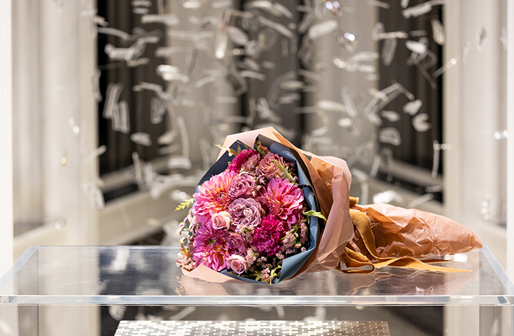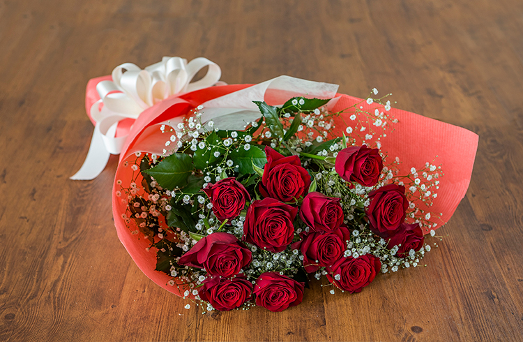 赤いバラの花束ではなく、ピンクのニュアンスブーケをご用意いたします。