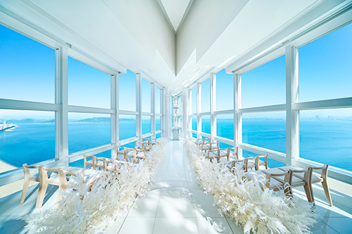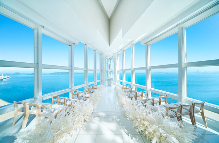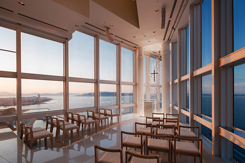海と空、福岡市街を見渡せる地上123mの天空のチャペル