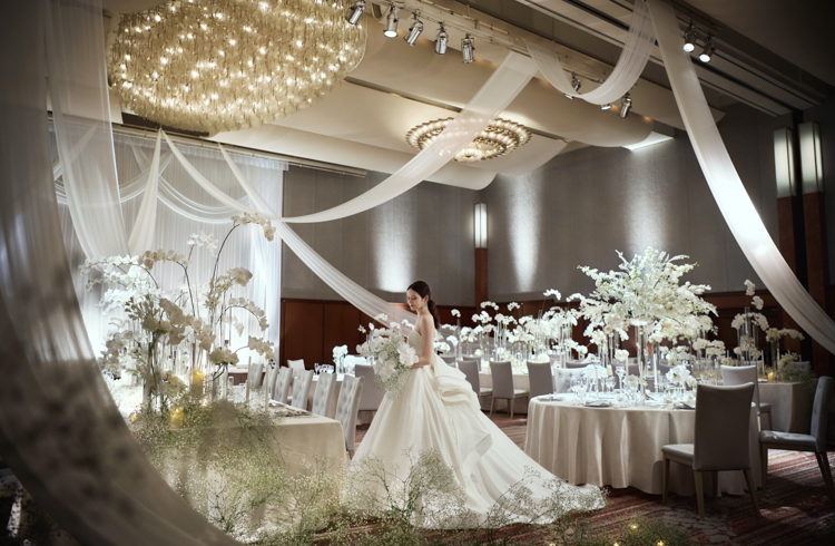 シャンデリア煌めく天井高約8mの荘厳な空間で生演奏とともに唯一無二の上質な披露宴を体験。