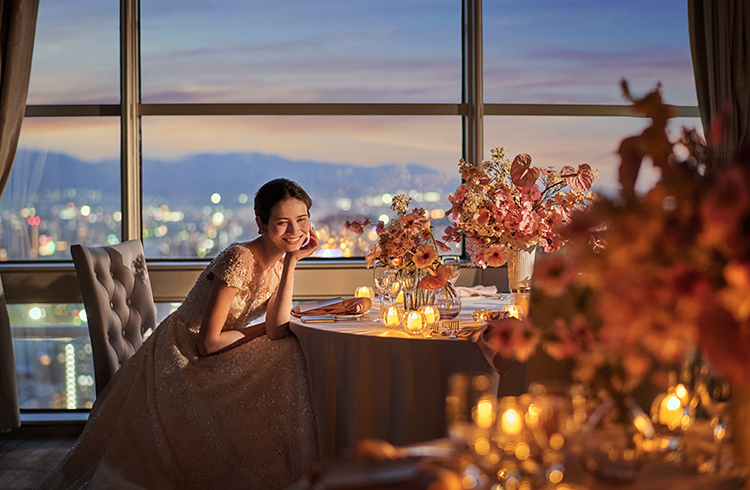 ホテル最上階、地上123mに位置する「チャペル イン ザ スカイ」や煌めく宝石箱をイメージした「ガーデンチャペル」を含む4つの挙式会場を完備。経験豊かなウエディング コーディネーターと専属のフローリストがおふたりの思い描くウエディングを実現いたします。また、ホテルならではの華やかな料理や演出など、おふたりの大切な方々を、おもいやり溢れるサービスでお出迎え致します。