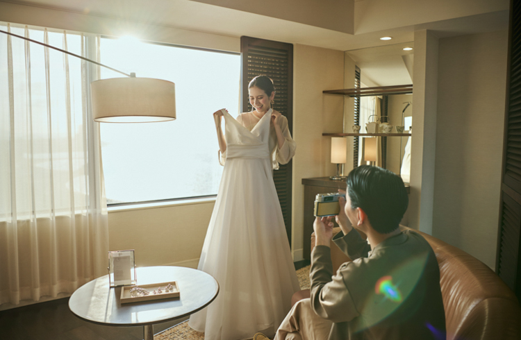 館内に併設されたドレスショップでは最新のドレスをご覧いただけます。ご予約状況によりドレスのご試着体験も可能です。