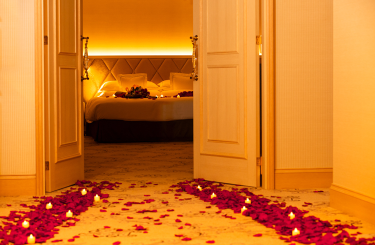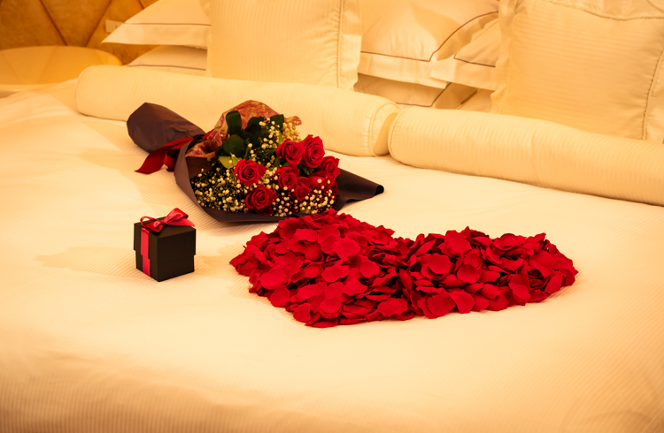 記念日のお祝いやプロポーズの際にベッドの上の大きなハートで演出。