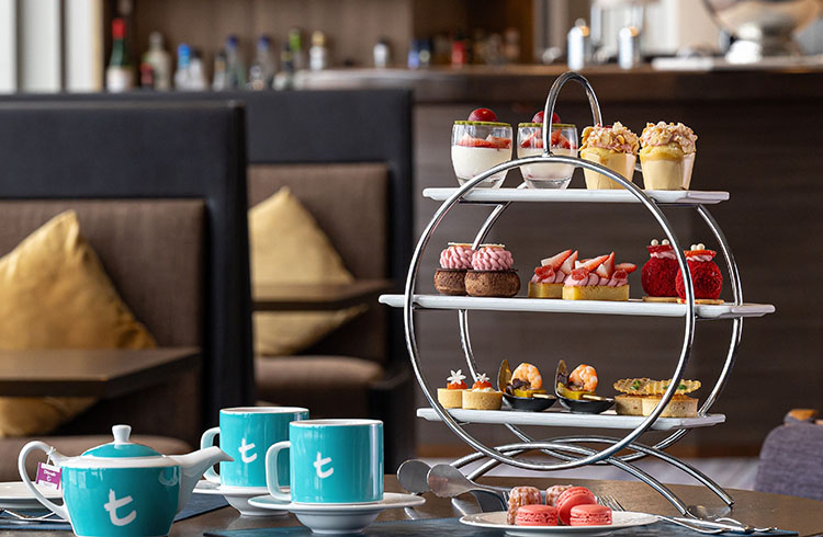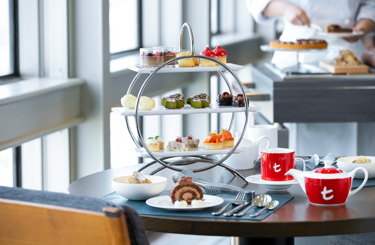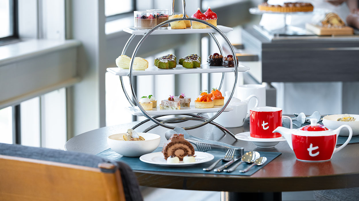 ホテル最上階に位置するBar & Dining CLOUDSで、福岡の海・空・街並みを眺望しながら楽しむ「天空のアフタヌーンティー」。