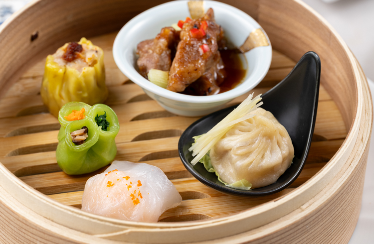 小籠包・海老蒸し餃子・広東焼売・海老と豚肉の翡翠餃子・スペアリブのトウチ蒸し