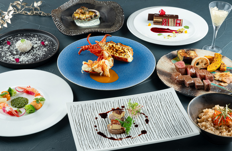 地上123メートルから福岡の絶景を眺めながら、シェフが厳選した黒毛和牛の「なかむら牛」が目の前で調理され、楽しめる鉄板焼。他にも伊勢海老や鮑、フォアグラなどの贅沢な食材を使ったメニューなど、クリスマスの特別なひとときを彩る優雅なディナーをご堪能いただけます。