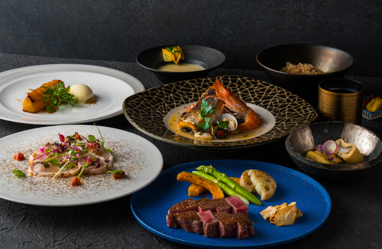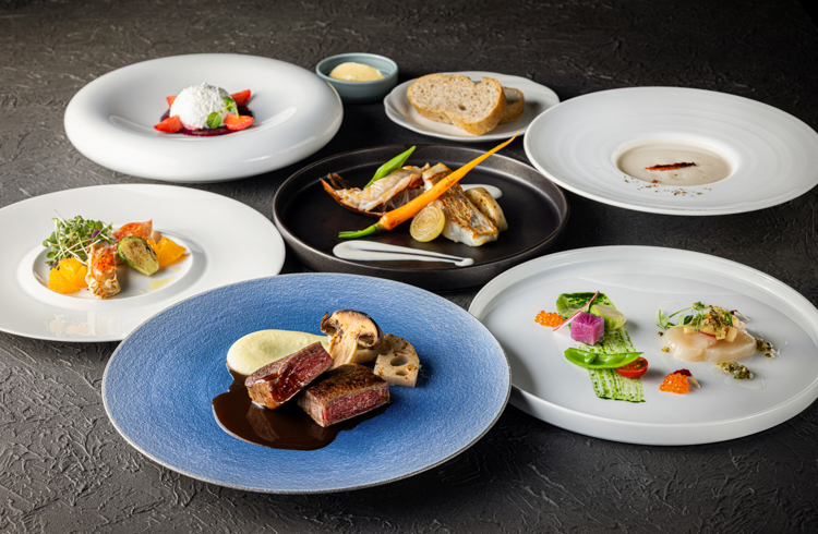 福岡で一番空に近いレストラン、贅を尽くした食を堪能する格別の空間。厳選指定した佐賀牛「なかむら牛」とともに新鮮な海の幸や季節の華やかな前菜などがお楽しみいただけるコース料理をご用意。
