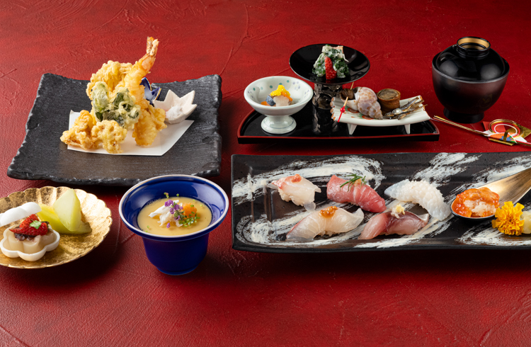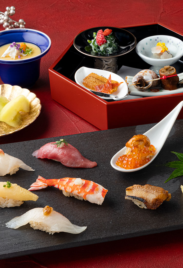 和の趣を感じるお正月特別コースには、シェフがこだわって厳選した豪華なネタをご用意しております。職人の技が生み出す料理はその味わいはもちろんのこと、見た目や盛り付けにも細やかな心配りが施され、和の凛とした佇まいを感じさせます。お正月にふさわしい、和の美しさを表現した品々をご堪能ください。