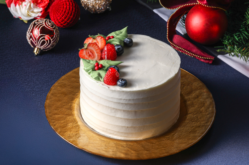 ヴァニラの芳香が漂うジェノワーズケーキ。生地の間には甘酸っぱいミックスベリーと甘いシャンティクリームを塗り、甘さの中に感じる酸味が程よいアクセントを加えたケーキ。