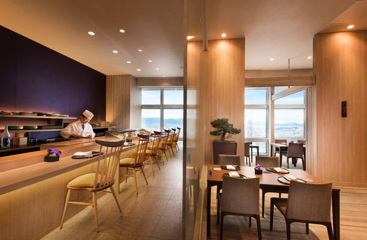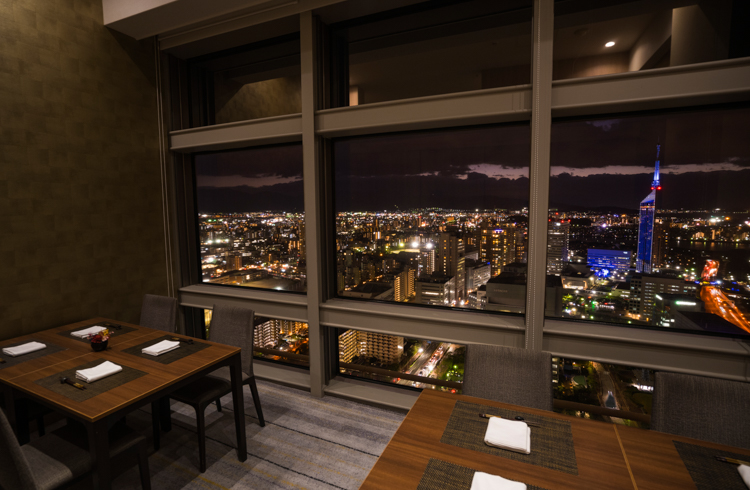 ホテル最上階からの夜景をご覧いただきながら、地元素材をふんだんにとりいれた季節の料理と寿司をご満喫ください。