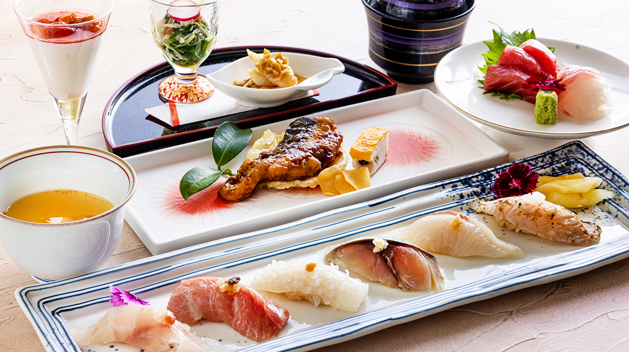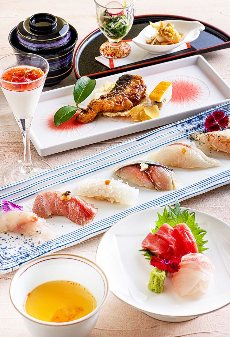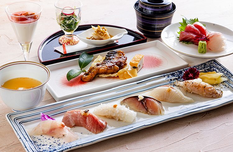 寿司と天麩羅がセットになった彩り豊かなコースなど、ランチは少しカジュアルに寿司と和食がお楽しみいただけます。