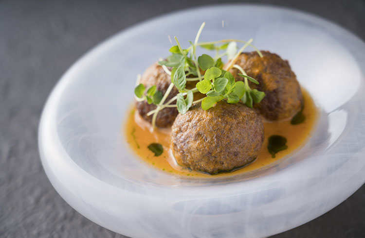 ・自家製チョリソーのアランチーニ 海老とトマト味噌ソース添え